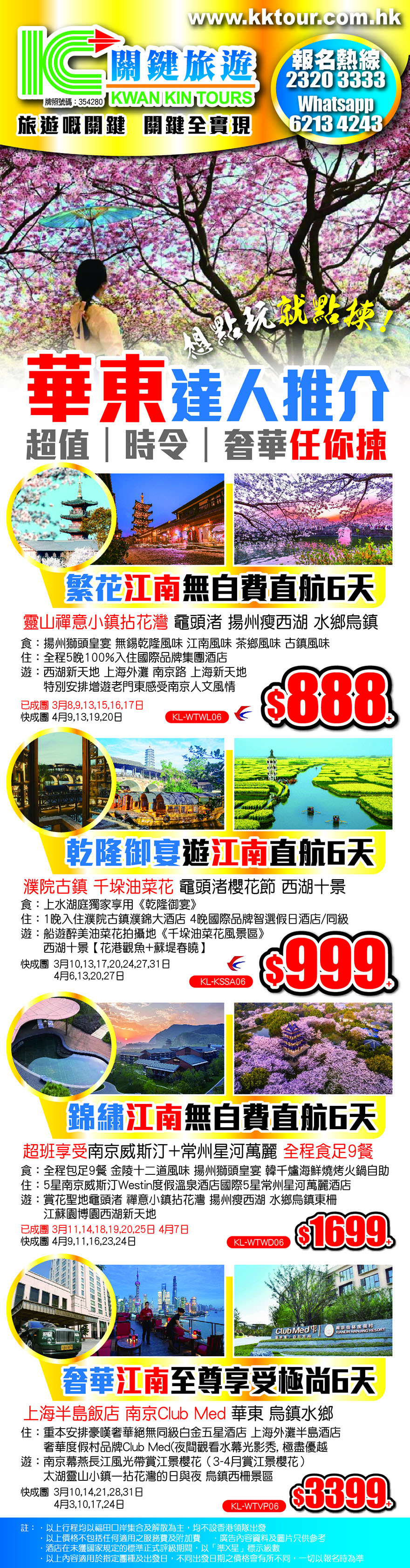 熱線電話 : 2320 3333 旅遊咨詢 WhatsApp : 6745 3024 / 6213 4243