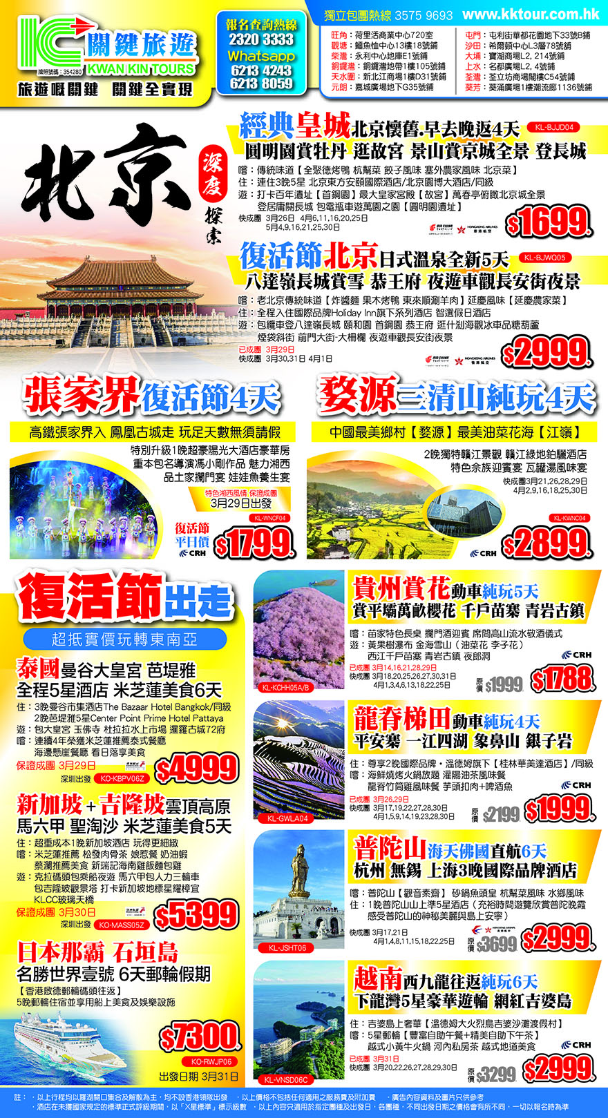 服務監督 : 3575 9672 聯絡郵箱 : admin@kktour.com.hk