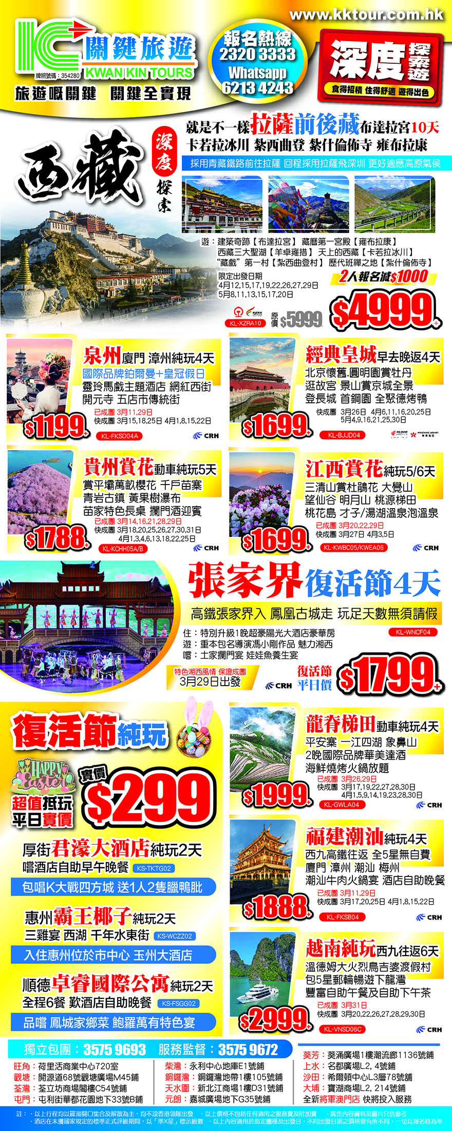 服務監督 : 3575 9672 聯絡郵箱 : admin@kktour.com.hk