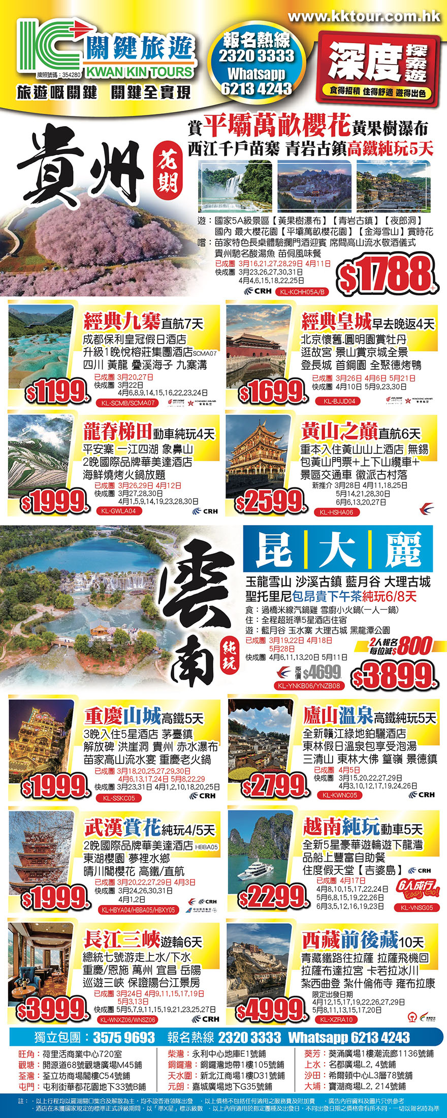 服務監督 : 3575 9672 聯絡郵箱 : admin@kktour.com.hk
