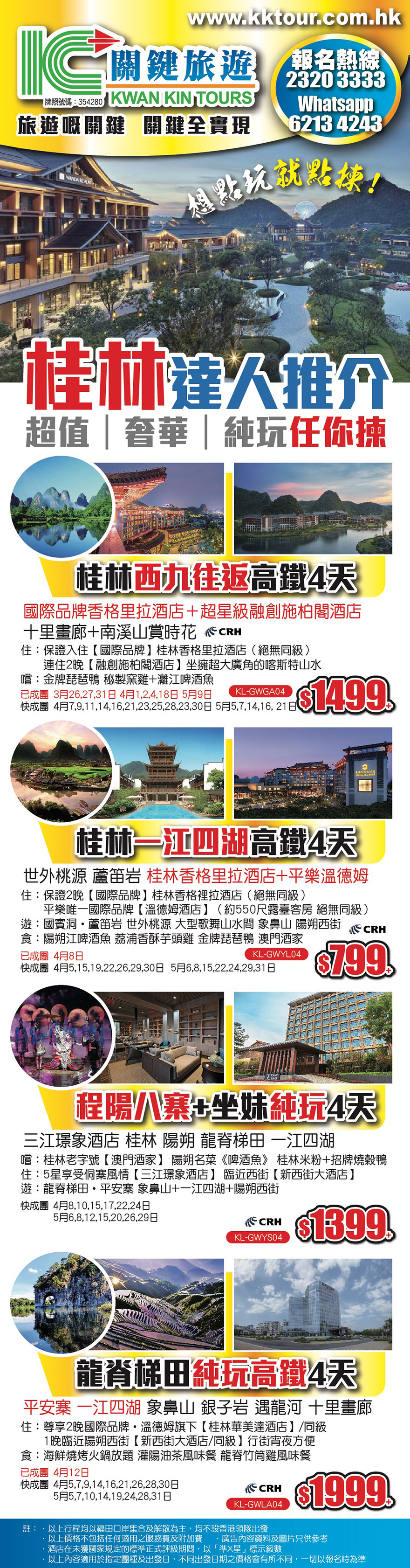 服務監督 : 3575 9672 聯絡郵箱 : admin@kktour.com.hk