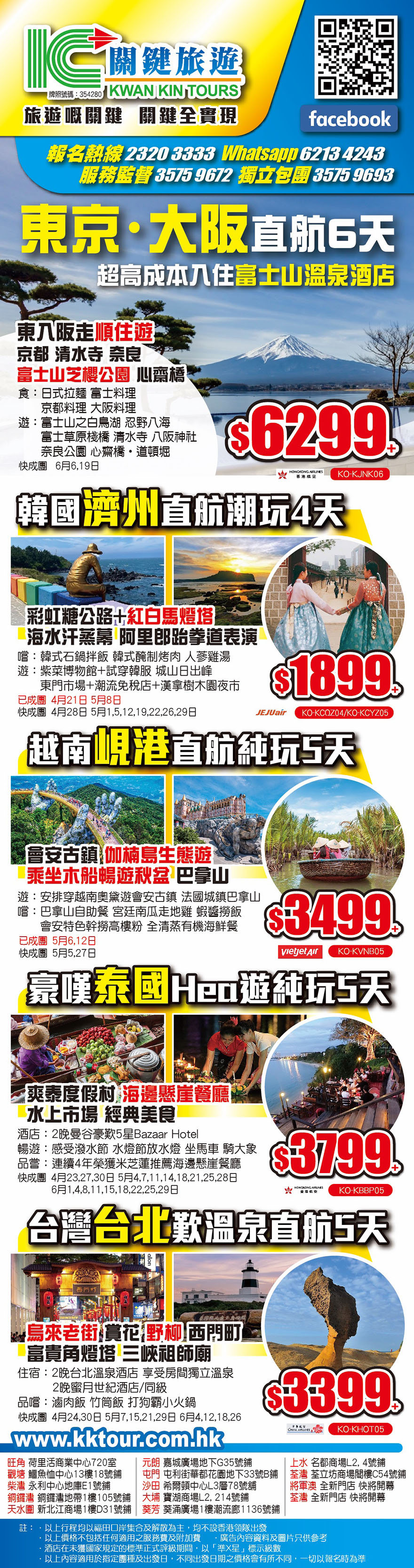 服務監督 : 3575 9672 聯絡郵箱 : admin@kktour.com.hk