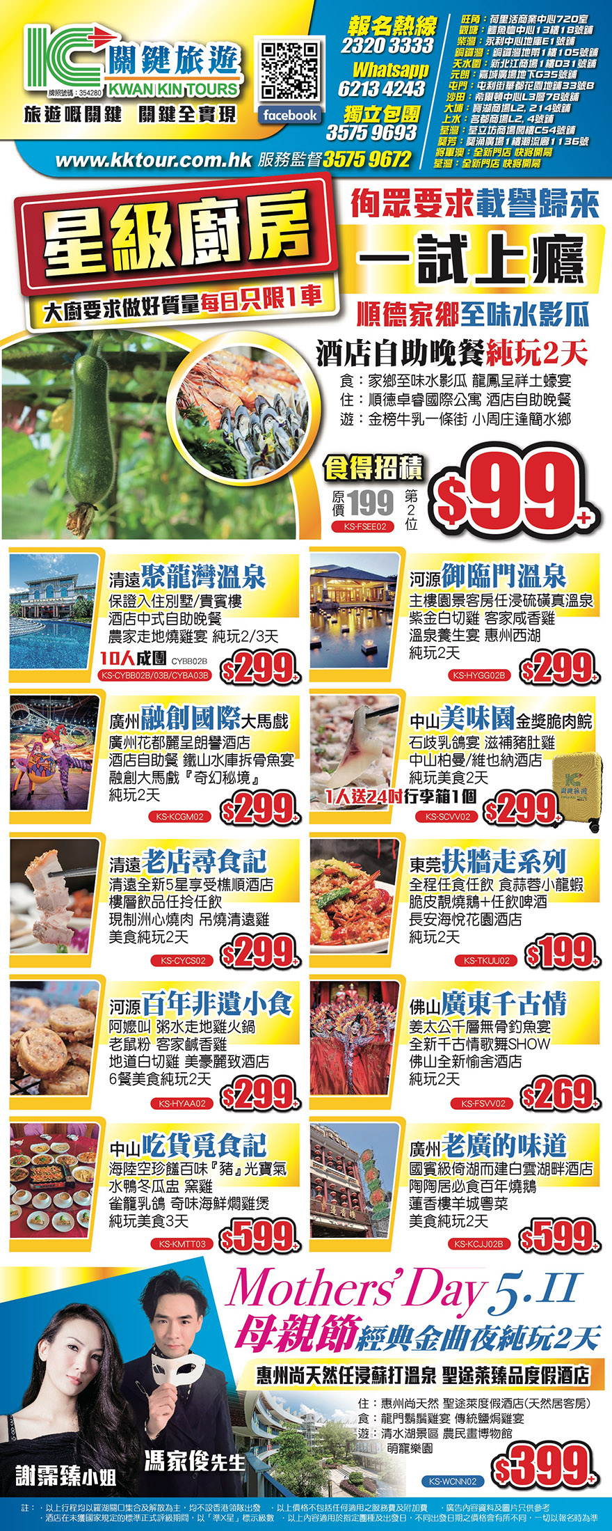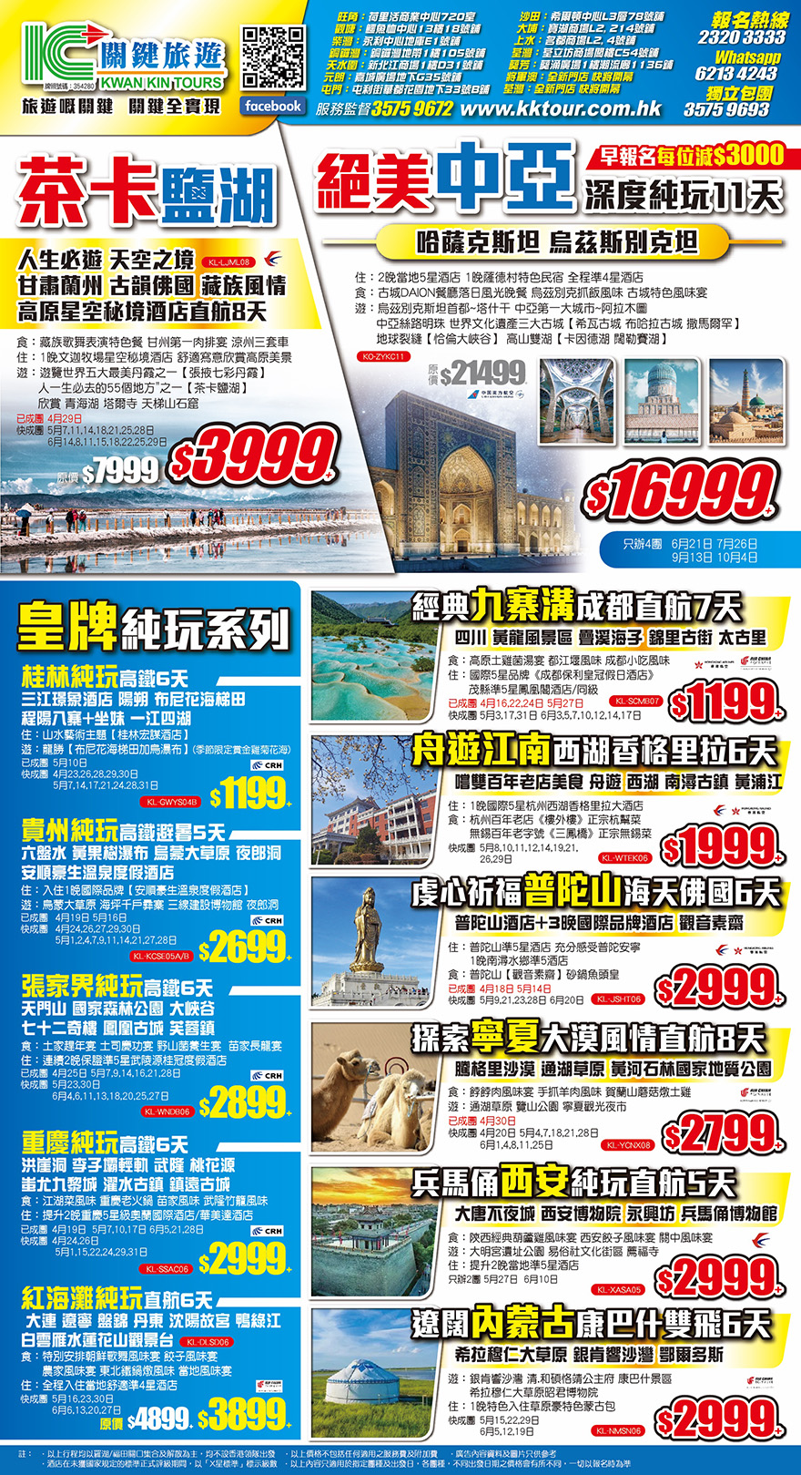 星級廚房 徇眾要求 載譽歸來 一試上癮 順德家鄉至味水影瓜,大廚要求做好質量 每日只限一車;絕美中亞 深度純玩哈薩克斯坦 烏茲別克斯坦 早報名每位減$3000;2024-04-15