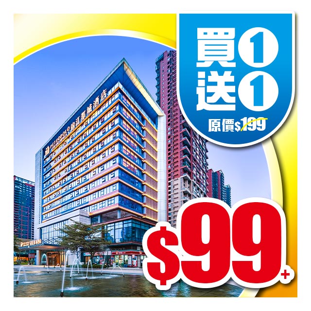 【震撼買1送1 】只要$99!!!享受惠陽全新聲控智能錦江都城酒店 酒店自助早午晚餐 純玩2天(10人成團)