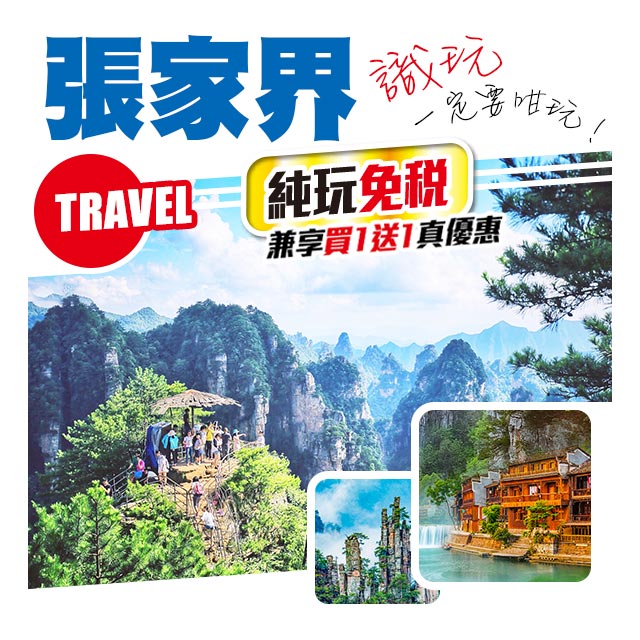 張家界【純玩免稅】全包重要景區 天子山 袁家界 鳳凰古城 入住5星陽光酒店 高鐵5天 買一送一 每人只要1299+!