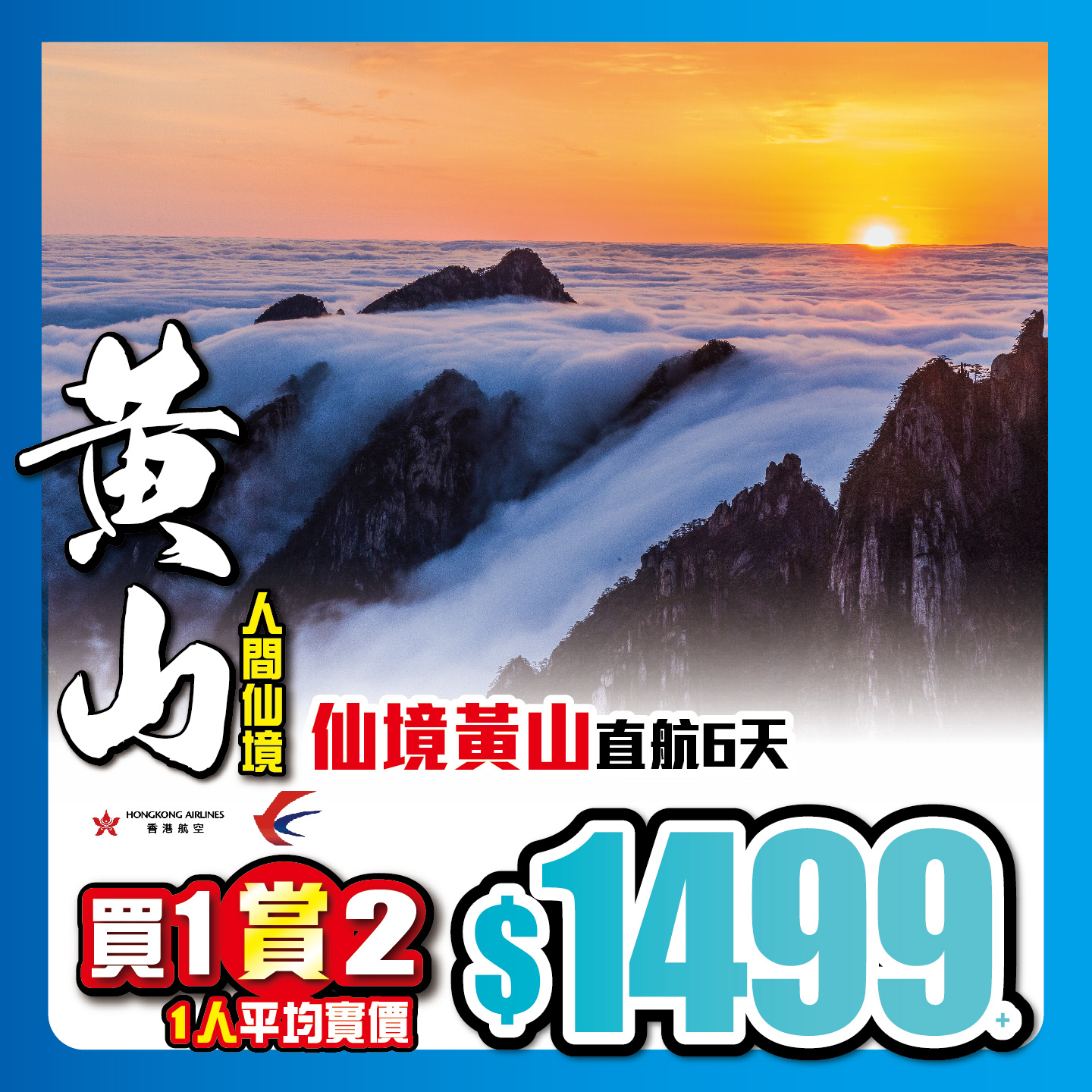 人間仙境黃山直航6天買1賞2,1人平均價$1499+;10.12重陽晚會;佛山蠔蟹情意純玩美食3天$599+;郴州潮人打卡買1賞2,1人平均價$499! 2024-09-23