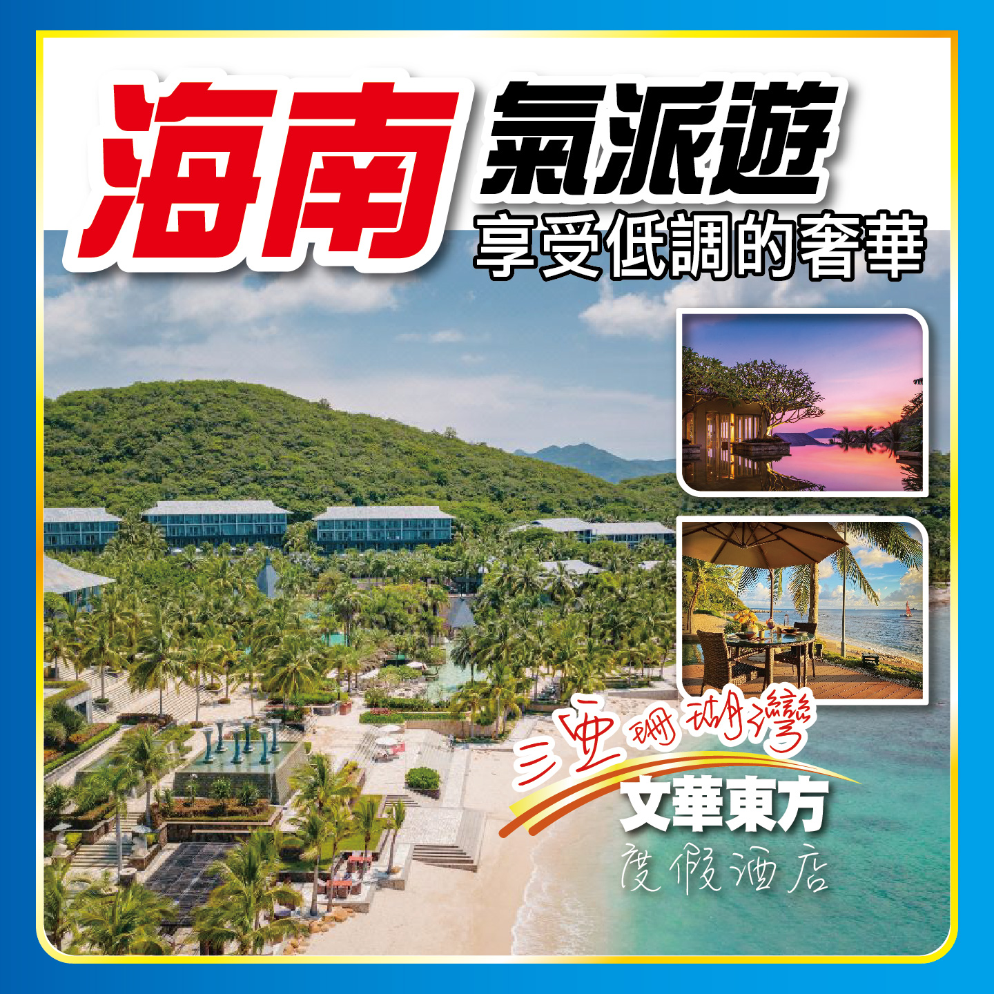 氣派遊海南,享受低調的奢華,入住三亞珊瑚灣文華東方酒店;平玩豪歎高鐵遊;中國逍遙遊巴士抵玩;2024-06-12